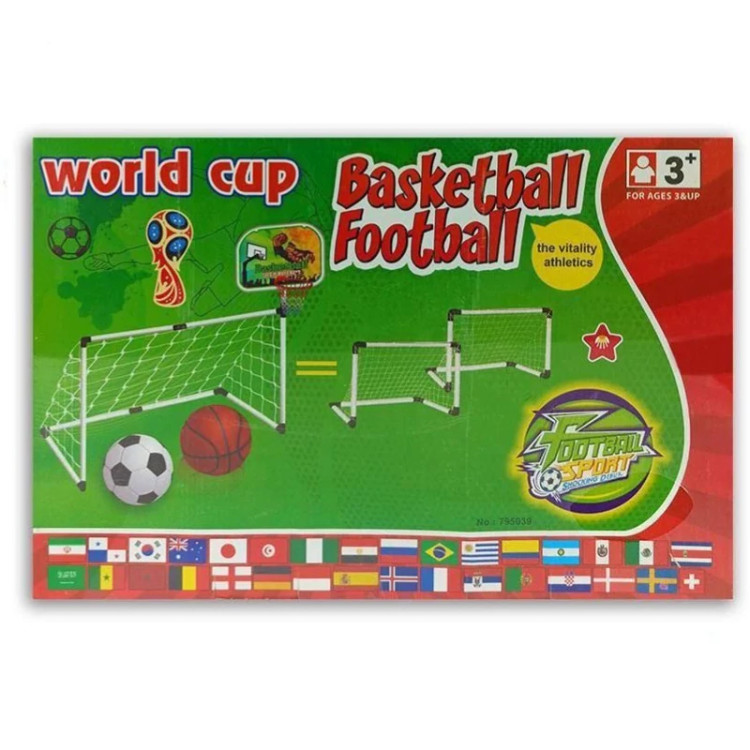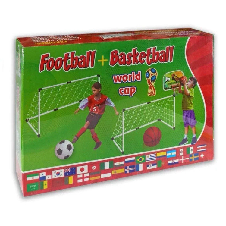 محتوی: - 2 عدد دروازه فوتبال - حلقه بسکتبال - توپ فوتبال و بسکتبال