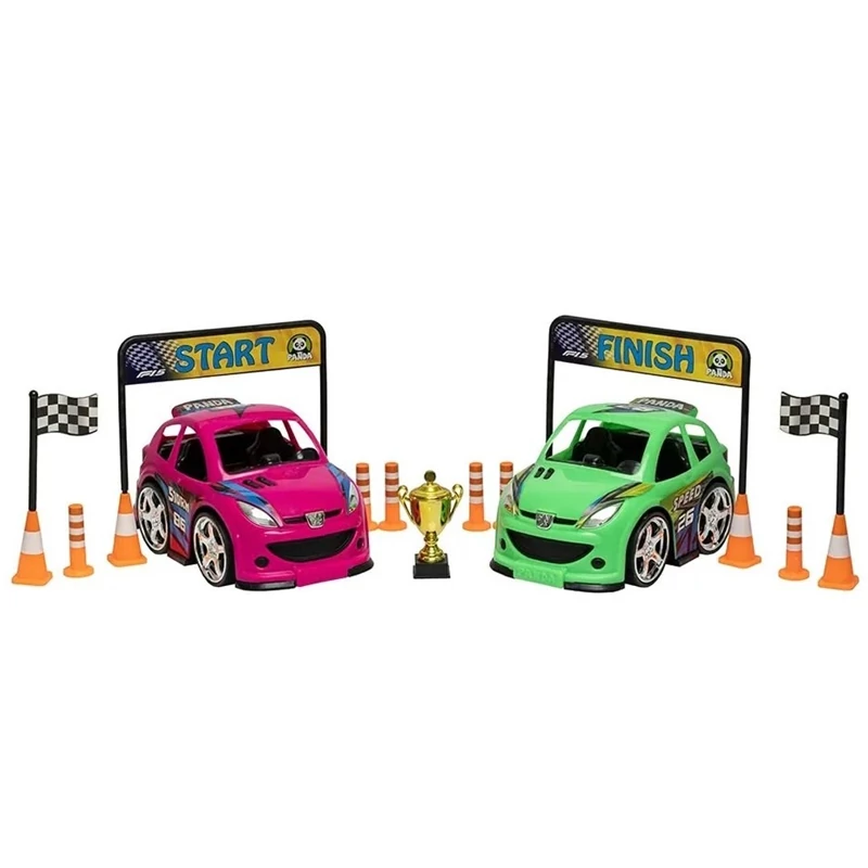 - برند پاندا - جنس پلاستیک فشرده - دارای تبلو خط شروع و پایان - دارای دو عدد خودرو مسابقه - دارای قیف و علائم - دارای کاپ قهرمانی