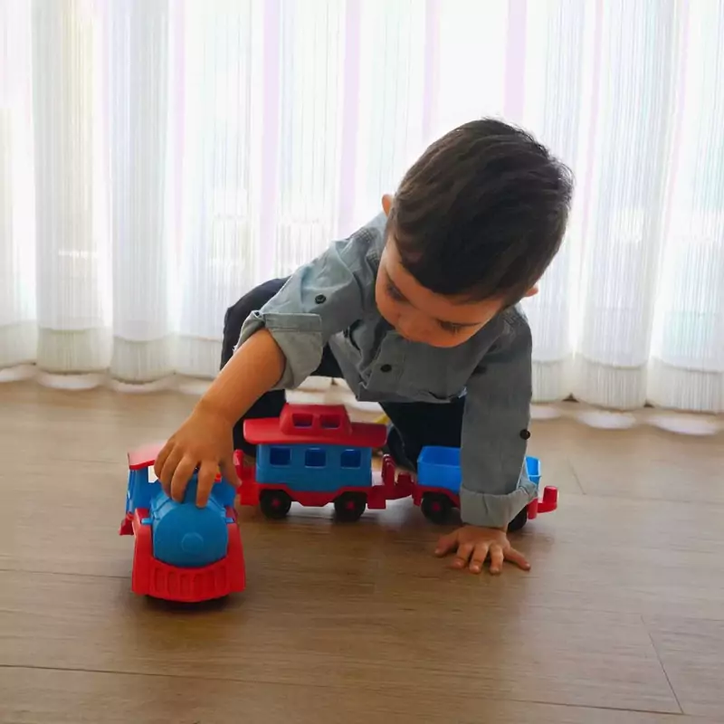 - *رنگهای جذاب*: رنگ قرمز و آبی چشمنواز که به زیبایی ظاهری قطار اضافه میکند و برای کودکان جذاب است.