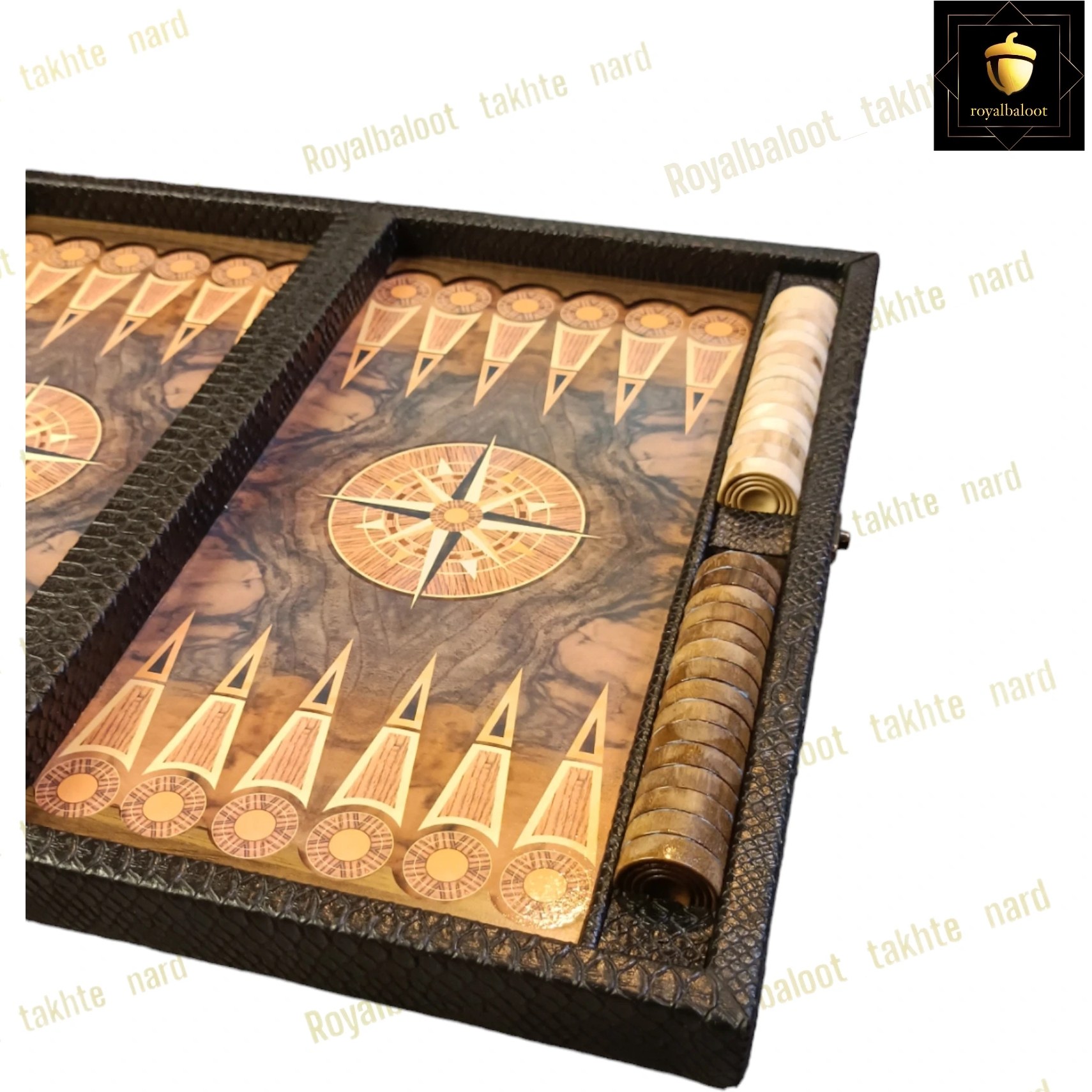 تخته نرد چوبی طرح چرم مدل قطب نما